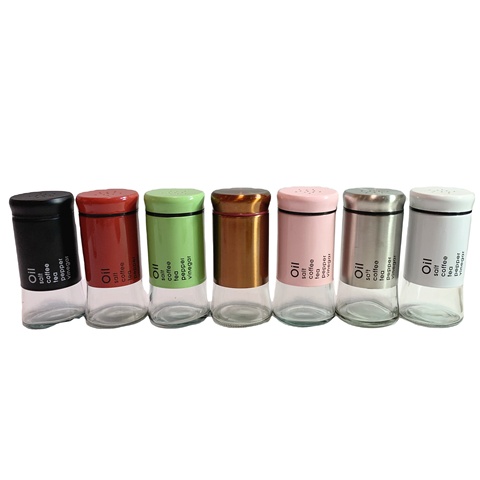 Cubierta de acero inoxidable de 4oz, organización de almacenamiento de condimentos de vidrio, combinación de botellas de salsa, utensilios de cocina